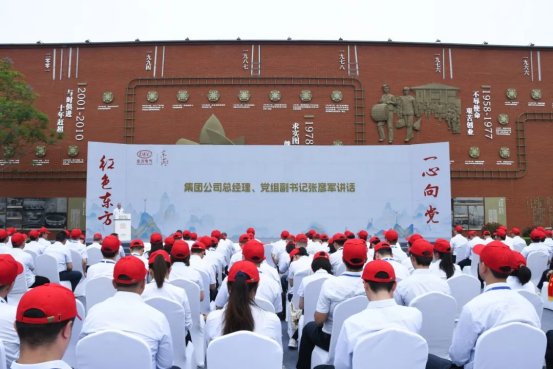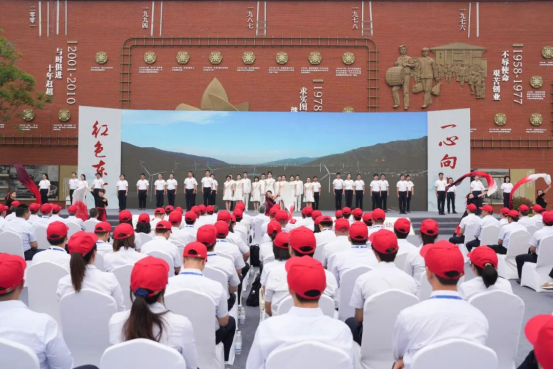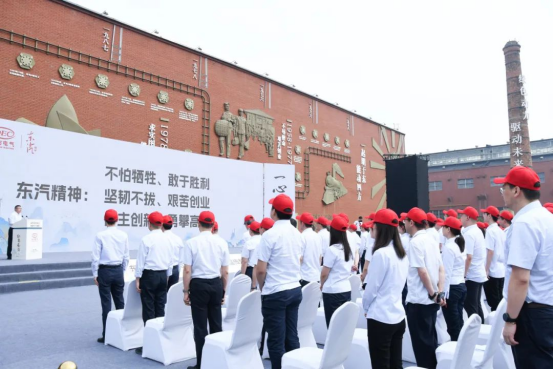 與會人員集體誦讀東汽精神并觀看文獻(xiàn)紀(jì)錄片《東方》之《勇攀高峰》,以《奮進(jìn)東方》表演展示凝聚團(tuán)結(jié)奮斗之力。