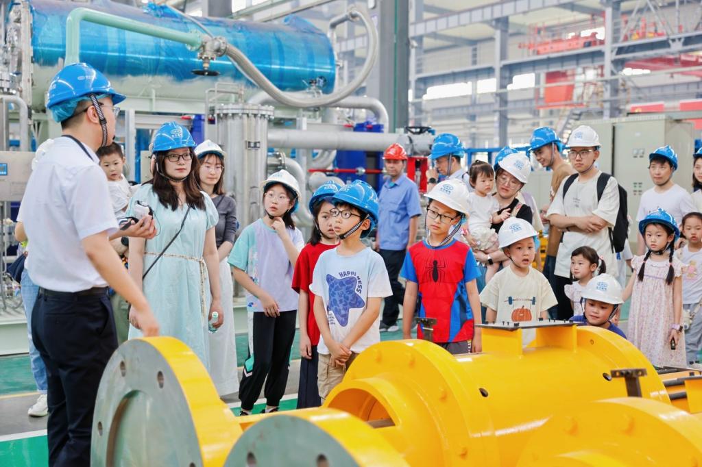東方汽輪機開展“制造零距離·能源科普行”國企開放日暨勞模工匠家庭日活動,勞模工匠、崗位標兵代表及家屬140余人歡聚一堂。大家參觀了東汽精神文化長廊、數字集控中心、全重科技展廳、數字化車間,近距離了解國之重器的制造過程,真正實現了“制造可觀、能源可感、科普有趣”;在趣味科普環節中,孩子們在材料實驗室和“安全小屋”中進行了“鈦合金小超人”試驗,學習了滅火器使用方法。